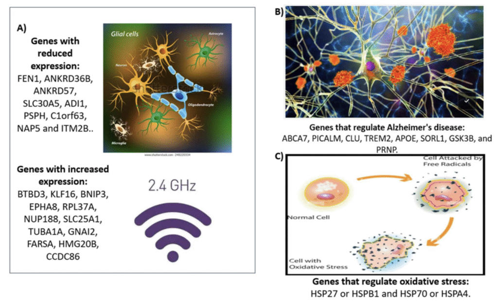 Los autores del estudio, publicado en el último número de Frontiers in Neurology, concluyen: «La exposición a campos electromagnéticos de 2,4 GHz emitidos por dispositivos Wi-Fi podría tener un impacto indirecto en la regulación de genes implicados en la enfermedad de Alzheimer, en particular aquellos relacionados con el estrés oxidativo y la homeostasis celular». En concreto, señalan: «La alteración de genes como GSK3B y APOE, fundamentales en la neurodegeneración, podría verse exacerbada por la exposición crónica a esta radiación».